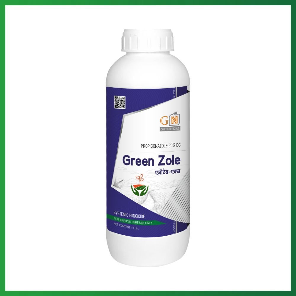 GREEN ZOLE by Green Nexus is a highly effective systemic fungicide containing Propiconazole 25% EC, designed to control a wide range of fungal diseases including rusts, leaf spots, and blights. Its quick absorption and long residual action ensure superior protection and healthier crop growth.